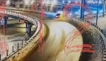 Опубликовано видео момента падения Mercedes с эстакады МСД на МКАД