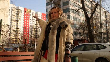 Врач-косметолог, жительница дома на Домодедовской улице Елена Кадрова вышла на улицу сразу, как только услышала громкие взрывы / Фото: Анатолий Цымбалюк / Вечерняя Москва