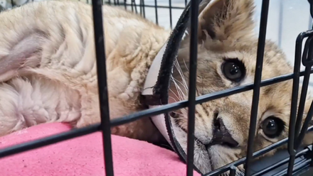 Львенок пробыл у Котова целый месяц, пока 25 декабря к блогеру не пришли волонтеры. Они забрали животное и отвезли в парк львов «Земля прайда», где его осмотрели ветеринары. Хищник был в критическом состоянии: у него выявили переломы трех конечностей, повреждение позвоночника, а также общее истощение костной ткани.