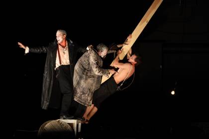 — Количество смыслов, событий, поворотов, мотивов, философии, загадок, мест действия в этой пьесе поражает, — говорит Юрий Бутусов. — Написать ее мог только безумец. Это разрушение всех законов, правил, выход за пределы разумного. Мир, раздавливающий человека, рвущий его в клочья, поиски самого себя, человеческий бунт против предназначения, романтический гимн всепобеждающей любви... В общем-то, в этой пьесе есть все.