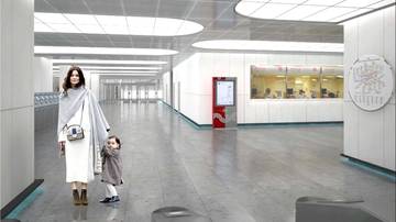 Главная особенность в дизайне станции — это потолок, который украсят два уровня алюминиевых панелей.