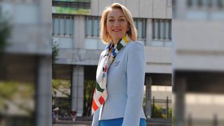Председатель Москомархитектуры Юлиана Княжевская на фоне здания Центрального дома художника / Фото: Ветлана Колоскова / Вечерняя Москва