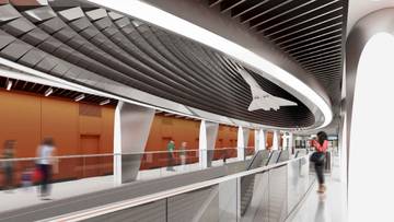 А на противоположной стене специалисты смонтируют алюминиевые панели с графическими изображениями летательных аппаратов, которые познакомят пассажиров с историей отечественного самолетостроения. Сейчас эти панели изготавливаются на производстве.