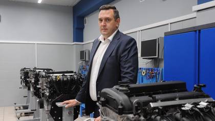 Директор крупнейшего в России автомобильно-дорожного колледжа Роман Фомин в мастерской технического обслуживания и ремонта, где студентов будут обучать работе с двигателями внутреннего сгорания / Фото: Пелагея Замятина / Вечерняя Москва