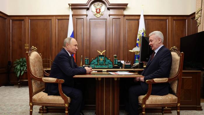 Мэр Москвы Сергей Собянин (справа) рассказал президенту Российской Федерации Владимиру Путину о достижениях, которых добилась столица в 2023 году