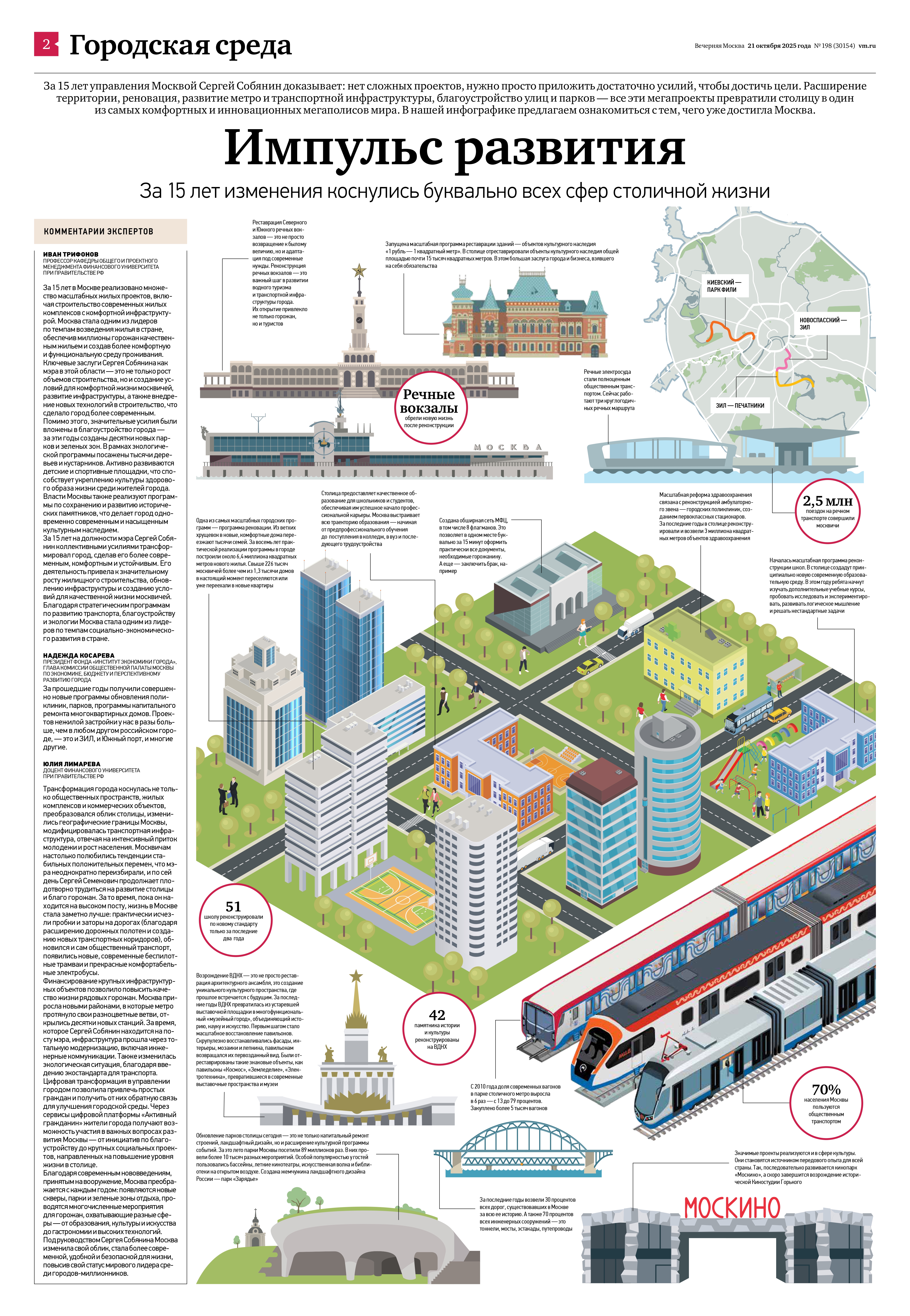— Столица демонстрирует активное, а главное, комплексное развитие. Город не просто адаптировался к вызовам времени, но нашел в них векторы для роста. Совершен прорыв в сфере транспортного обеспечения, — отмечает глава инвестиционно-промышленной группы Лев Мазараки. — При этом Москва продолжает задавать высочайшие стандарты развития транспортной инфраструктуры.