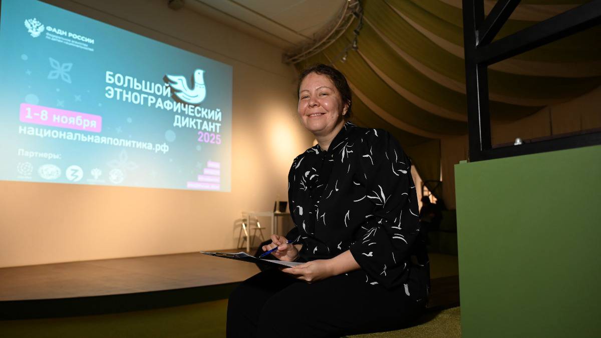 Экскурсовод музея-панорамы «Бородинская битва» Анастасия Васильева пишет Большой этнографический диктант на рабочем месте