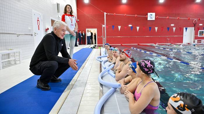 Мэр Москвы Сергей Собянин открыл новый физкультурно-оздоровительный комплекс с двумя бассейнами «Акварис» в районе Зябликово и пообщался с его первыми посетителями. Спортивный объект возвели по просьбам местных жителей / Фото: Владимир Новиков / Пресс-служба мэра и Правительства Москвы / АГН «Москва»