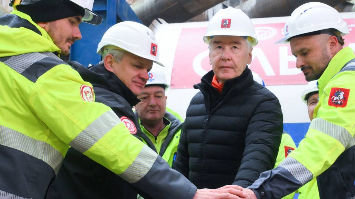 Мэр Москвы Сергей Собянин и генеральный директор АО «Мосинжпроект» Сергей Жуков во время церемонии старта строительства второго участка Троицкой линии метро. Развитие транспортной системы в столице ведется беспрецедентными темпами