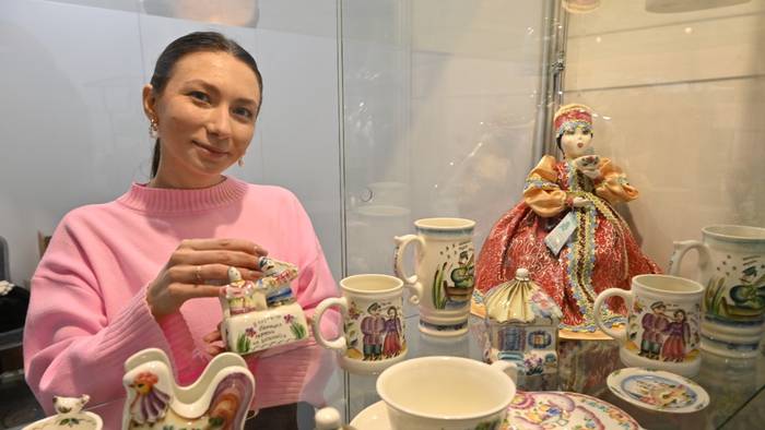 Гостиный Двор. Одна из участниц, Юлия Борисова, представляющая семикаракорскую керамику, завершает последние приготовления перед открытием VI Художественно-промышленной выставки-форума «Уникальная Россия» / Фото: Александр Кочубей / Вечерняя Москва