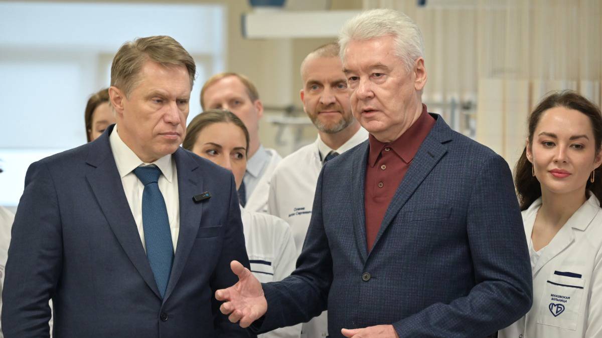 Мэр Москвы Сергей Собянин и министр здравоохранения РФ Михаил Мурашко осмотрели итоги комплексной реконструкции корпуса № 12 Городской клинической больницы имени В. В. Вересаева на Лобненской улице, в котором откроется родильный дом.