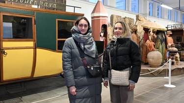 Посетители экскурсии киноконцерна «Мосфильм» Александра Сайфутдинова и Татьяна Кондратюк