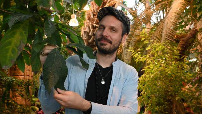 Научный сотрудник Ботанического сада МГУ «Аптекарский огород» Алексей Филин показывает бутоны авокадо гватемальского, которые зацвели впервые в этом столетии / Фото: Мария Хапцова / Вечерняя Москва
