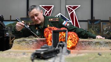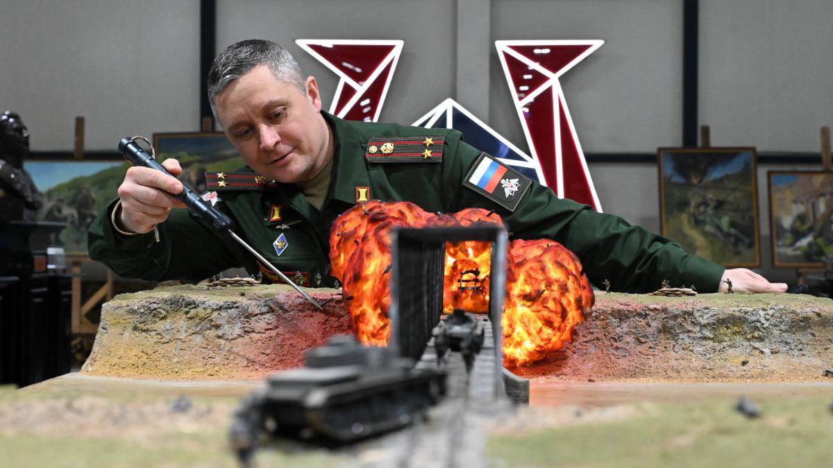 Военнослужащий ВС РФ, офицер инженерных войск Матвей Глушков (имя и фамилия изменены по просьбе героя. — «ВМ») демонстрирует на макете, как советские саперы останавливали фашистскую армию во время Великой Отечественной войны