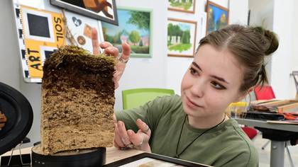 — Мы стараемся популяризировать почву и привлекать внимание к ней. Часто людей волнует то, что растет сверху, но именно здоровье земли напрямую влияет на качество растений. Кроме того, она может быть предметом искусства. Мы создали украшения с почвенными образцами в эпоксидной смоле и несколько картин из краски, которую тоже произвели сами, — поделилась аспирантка факультета почвоведения МГУ Мария Чепурнова.