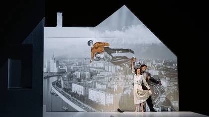 Как рассказал режиссер Роман Шаляпин, хронологию подсказывала художественная логика спектакля-биографии: сцены составляют почти что «роман взросления», точнее творческого становления. В экспозиции мы видим молодого Вознесенского (актер и певец Павел Артемьев), собравшего на пирушку своих ровесников — «ангелов грязи», юных дерзких поэтов и поэтесс. Они пьют вино, пикируются и рассуждают о «высоком», к примеру, хозяин квартирника предлагает друзьям отсчитывать поколения не по «горизонтали», то есть паспортному возрасту, а по «вертикали» — силе таланта, и назначает своими сверстниками Петрарку, Гете, Бодлера и Эллюара. В «проклятого поэта» тут же перевоплощается самая хрупкая девушка в мужском костюме, но декламировать стихи в дыму сигары ей не дает Пастернак. Как выясняется, кумир творческой молодежи живет по соседству, и шум мешает ему спать....