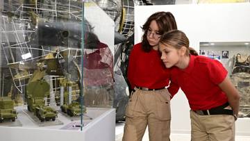 Юнармейцы Ярослава Кривова и Василина Волошина рассматривают экспозицию, посвященную работе советской ПВО, в новых залах Центрального музея ВС РФ / Фото: Мария Хапцова / Вечерняя Москва