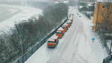 Сотни грузовиков доставляют убранный с улиц снег в снегоплавильные пункты круглосуточно