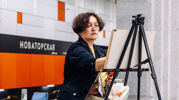 Проект «Искусство в метро» с 2024 года позволяет художникам творить в метро. На их картинах подземка часто выглядит необычно. Художница проекта Ольга Качановская на «Новаторской».