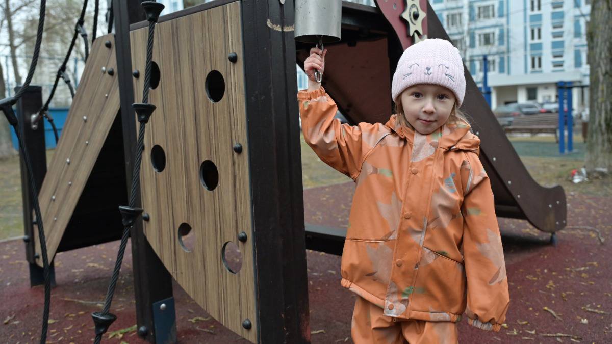 4-летняя москвичка Варвара Соломыкина на детской площадке в районе Отрадное