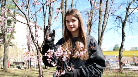 Москвичка Лада Сидорова помогала высаживать цветущую сакуру
