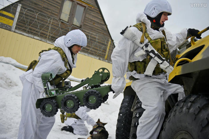 Трехногая пушка водяным зарядом разрушает механизм без подрыва взрывчатки (по условиям учений это парк и люди вокруг. — «ВМ»). И это не все секреты саперной «кухни» Росгвардии. Офицеры ЦИТО и сотрудники бюроразработчика демонстрируют гусеничных роботов на дистанционном управлении, которые в большинстве случаев заменяют людей.