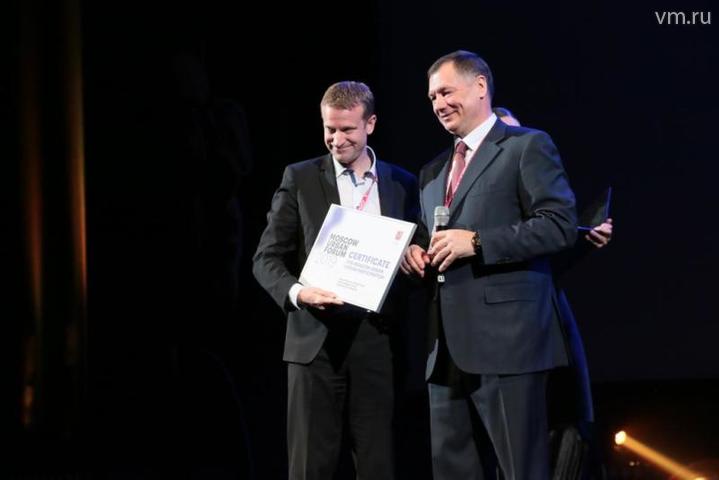 Вручение сертификатов на посещении Московского урбанистического форума. Гостям MIPIM их вручает заммэра Марат Хуснуллин / Фото: Василиса Чернявская «Вечерней Москва»