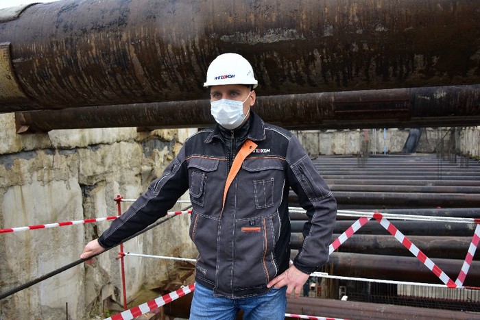 — Основные монолитные конструкции почти готовы, работы выполнены на 90 процентов, — обводит рукой он серые стены. — Проходка тоннелей завершена. Строителям предстоит демонтировать коммуникации после щитовой проходки. Из тоннеля и со станционного комплекса уберут специальный транспортер, по которому еще недавно грунт подавался на поверхность.
