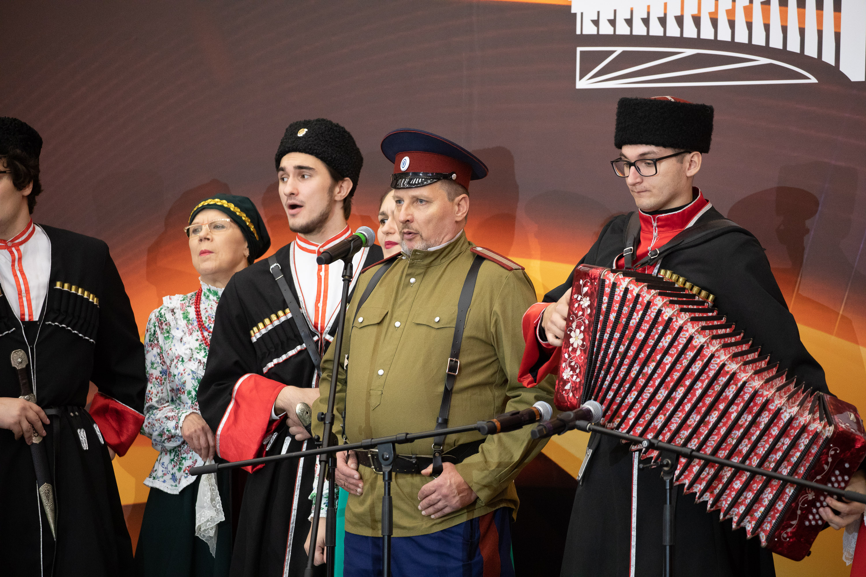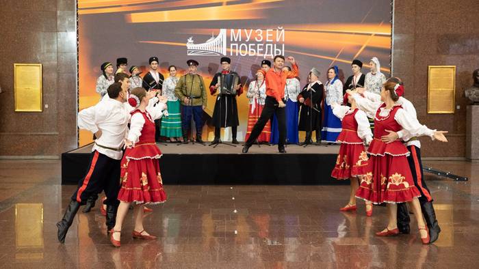 Перед гостями выступили студия народного танца «Россияночка», волонтеры Музея Победы, а также ансамбль казачьей песни «Берюга». Лауреаты всероссийских и международных конкурсов исполнили русские народные песни — «Русь», «Кукушка», «Терек» и другие.