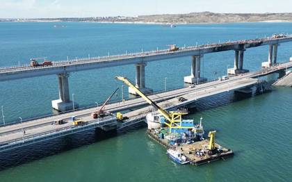 Плавучий кран приступил к работе по восстановлению Крымского моста