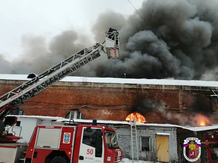Как уточняется, из горящего склада эвакуировали семь человек. В тушении пожара принимают участие 80 человек и 20 единиц техники. В здании частично обрушились перекрытия между этажами.