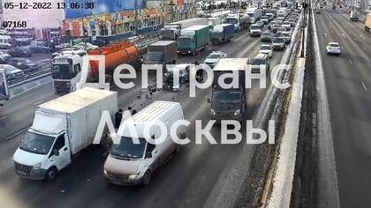 Грузовик столкнулся с легковушкой на МКАД на юге столицы