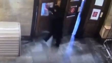 Пьяный мужчина разбил стекло в двери в столичном метро. Видео