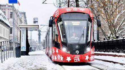 Новогодний трамвай по маршруту «А» запустили в центре Москвы