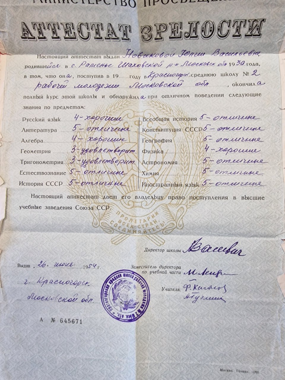 Так, среди раритетов оказались свидетельство о рождении женщины, аттестат, удостоверение к государственным наградам. Главный среди документов — справка, в которой написано, что Новикова была сотрудницей спецобъекта № 42 (так назывался Красногорский лагерь с 1947 года). Сейчас на его территории находится филиал Музея Победы.
