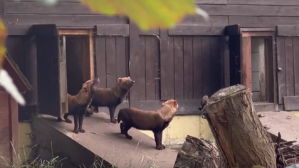 «Вышли на разведку»: Московский зоопарк показал кустарниковых собак после дождя