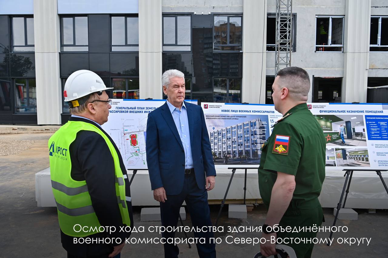 Собянин осмотрел ход строительства нового здания объединенного военкомата по СВАО
