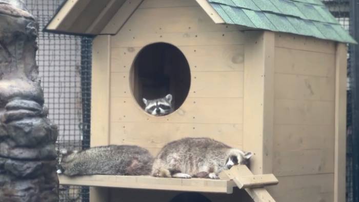 «Как же сладко спится»: в Московском зоопарке показали кадры с дремлющими в непогоду енотами