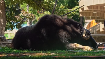 Пресс-служба Московского зоопарка в понедельник, 7 августа, показала кадры, как вальяжно отдыхает овцебык в установившуюся жару в центральном регионе.