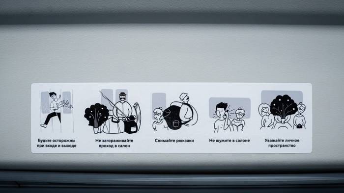Новые стикеры о правилах для пассажиров начали размещать в московском транспорте