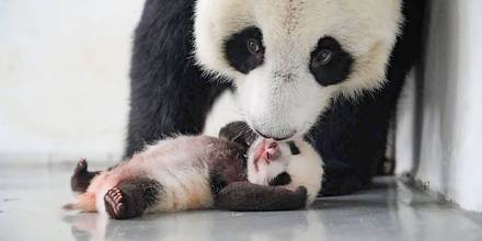 Маленькой панде недавно провели очередной осмотр. В ходе него выяснилось, что детеныш весит уже 6545 граммов. Ее длина — 63 сантиметра, а с хвостиком — 70,1. У малышки выросли шесть зубов: два на нижней и четыре на верхней челюсти.