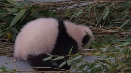 Детеныш панд Жуи и Диндин родился в августе. 24 ноября ей исполнилось целых три месяца. На плановом регулярном осмотре специалисты обнаружили, что у детеныша прорезались первые зубы — два нижних клыка.