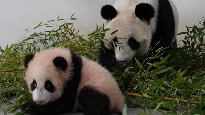 Генеральный директор Московского зоопарка Светлана Акулова в четверг, 22 февраля, поделилась кадрами, как панда Катюша ужинает вместе со своей мамой Диндин.