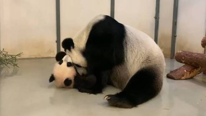Генеральный директор Московского зоопарка Светлана Акулова в воскресенье, 25 февраля, поделилась видеороликом с объятиями малышки-панды Катюши с ее мамой Диндин.