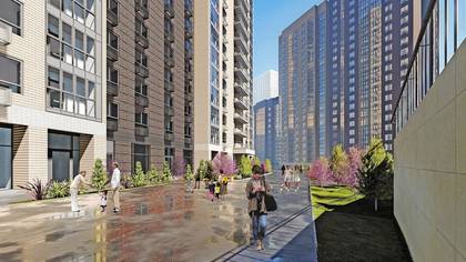 Во дворе оборудуют детскую игровую площадку с безопасным резиновым покрытием, спортивную площадку и площадки для отдыха взрослых.