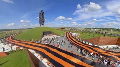 Масштабную Георгиевскую ленту развернут у Ржевского мемориала Музея Победы