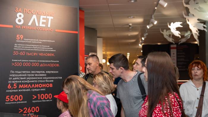 — На меня несколько разделов выставки «Обыкновенный нацизм» произвели глубокое впечатление. Особенно посвященные погибшим украинским детям — слезы наворачиваются на глаза, мы это переживаем как родители, ведь дети — это наше будущее! И пропагандистская литература поразила, которая представлена здесь, на ней украинской молодежи прививают неприязнь к тем, кто хочет говорить на русском языке или любит Россию. Это же кто-то делает, кто-то подпитывает. Поэтому наша задача — это поддержка тех, кто на передовой, единство и Победа!— рассказал посетитель музея Константин Александров.