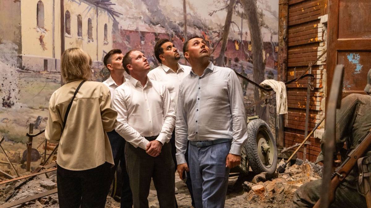 Затем для гостей провели экскурсию по масштабной иммерсивной экспозиции «Подвиг Народа». В локациях воссозданного исторического пространства гид Музея Победы рассказал о вкладе советского народа в Победу.