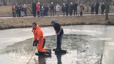 Кадры спасения мальчика посреди реки Битцы в Москве