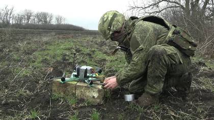 Оператор беспилотных летательных аппаратов из российской группировки войск «Восток» с позывным «Парус» на передовой производит запуск дрона-камикадзе / Фото: Марат Чернышов
